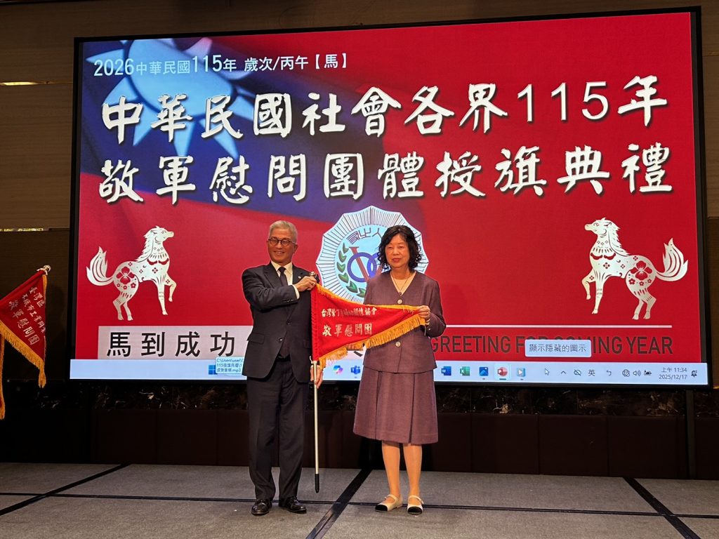 <友會活動分享>中華民國各界115年敬軍慰問團體授旗典禮 12 月 17, 2025 公用 公用 日期:114/12/17 地點:台北市花園大酒店二樓國際廳 中華民國軍人之友社於114/12/17舉辦「中華民國社會各界115年敬軍慰問團體授旗典禮」,由國防部副部長徐斯儉頒授敬軍旗幟,並代表致詞。 紫丁香婦幼關懷協會陳淑珠榮譽理事長代表協會出席典禮,接受徐副部長授旗,陳理事長表示,未來紫丁香婦幼關懷協會仍將秉持「軍愛民,民敬軍」的精神,積極響應敬軍活動,發揮力量支持國軍,感謝國軍守護國家及人民的安全。